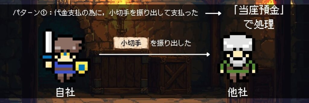このパターンは,「当座預金」で処理します。つまり,「当座預金」が減少します。