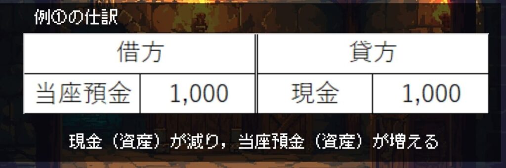 現金(資産)が減少し,当座預金(資産)が増加します。