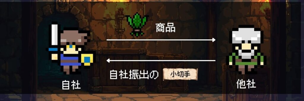 パターン②:代金受取の為に,自社の小切手を受け取った
