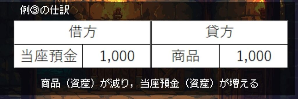 例③:売上代金1,000円を過去自社が振り出した小切手で受け取った