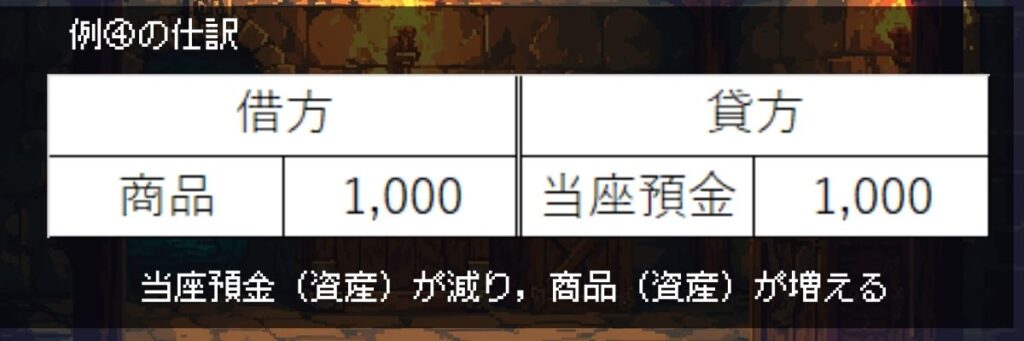 例④:仕入代金1,000円を小切手を振り出して支払った
