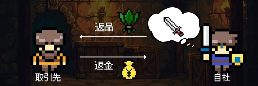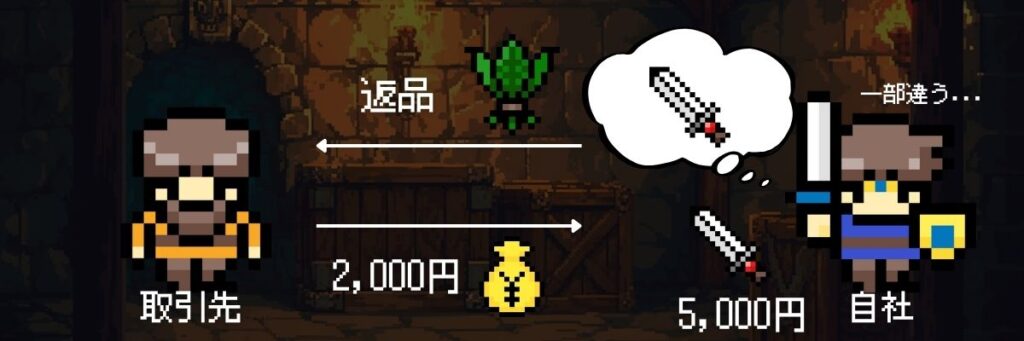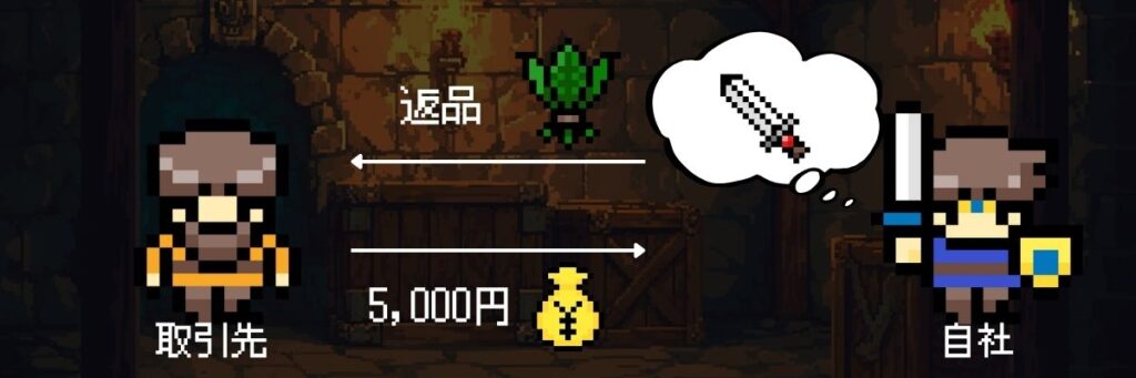 「仕入」を商品の発注ミスや品違い,品質不良などがあった際に返品する作業のこと