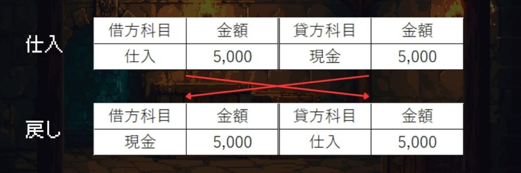 やることは単純!「仕入」をした時の仕訳と全く逆のことをすればいいのです。